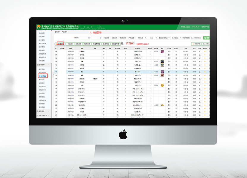 Inventory management: Production and processing machinery, pesticides, seeds, fertilizers, agricultural film, harvest products management